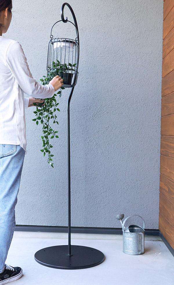 ◇別売のソーラーランタン(S23-0611)の中に植物を入れてハンギングスタンドにセットすれば昼も夜もハイセンスな空間が生まれます。