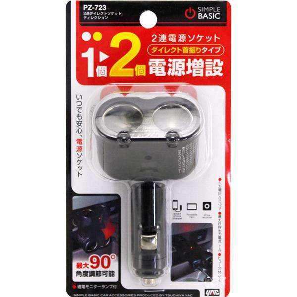 槌屋ヤック PZ-723 2連ダイレクトソケット ディレクション PZ723【お取り寄せ商品】【カー用品 電源 シガー ソケット 】