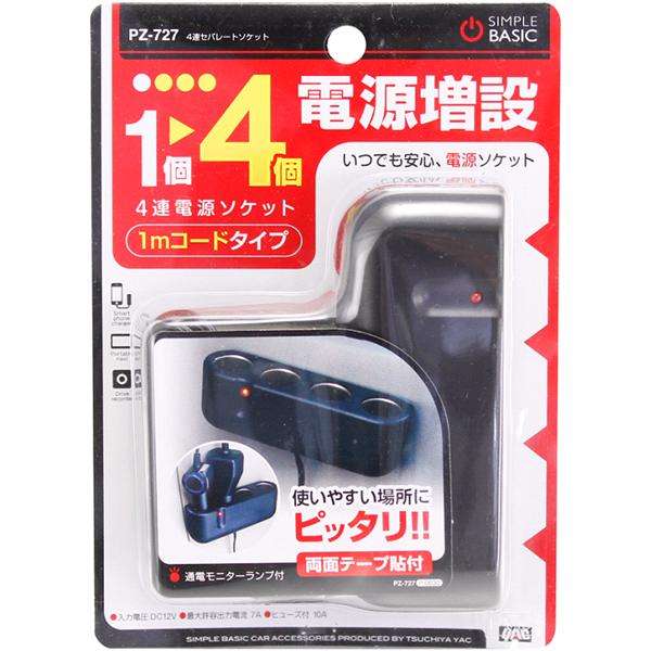 槌屋ヤック PZ-727 4連セパレートソケット PZ727【お取り寄せ商品】【カー用品 電源 シガー ソケット 】