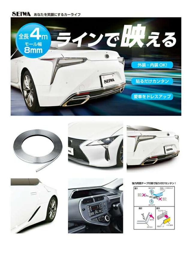 ●車内外問わず貼り付け可能で、クロム調のスタイリッシュなカラーマルチモールです。