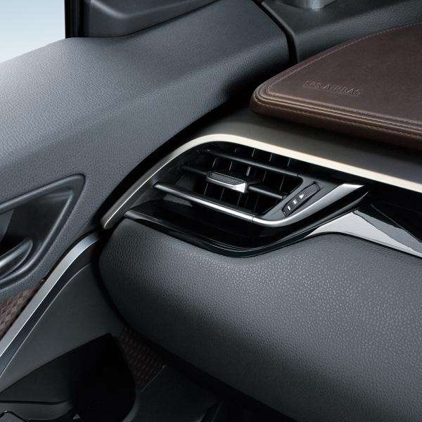 ◇内装に合わせたラメ入り黒ツヤ+革シボ調で一体感+高級感を演出。
