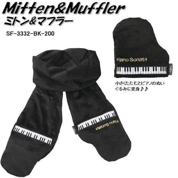 ■SF-3332-BK-200 ミトンマフラー(ピアノソナタ) ブラック SF3332