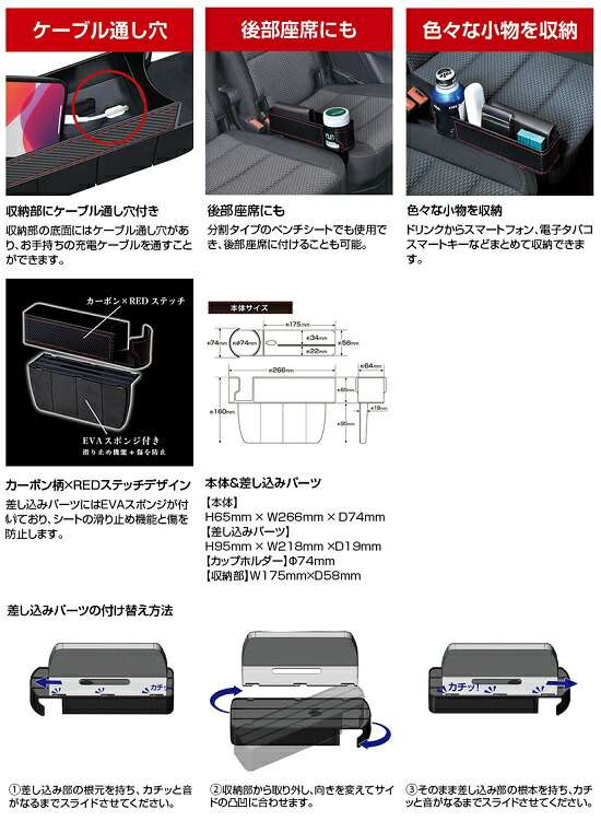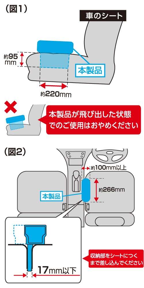 ●シートサイドに差し込むだけで簡単に取り付けできます。