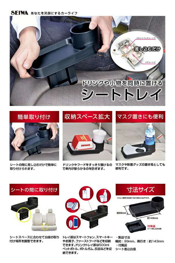 WA72 シートトレイ + ドリンク セイワ SEIWA WA-72【お取り寄せ商品】【カー用品 ポケット】