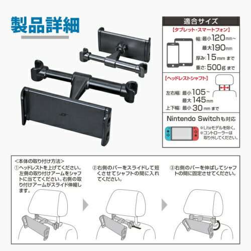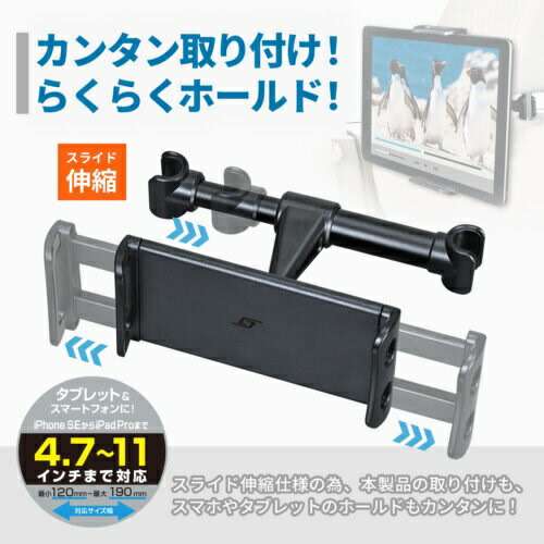 ヘッドレストシャフト取付専用スマートフォン&タブレットホルダー