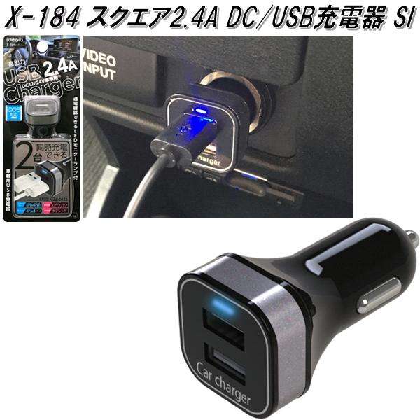 アークス AXS X-184 スクエア2.4A DC/USB充電器 ブラック/シルバー X184【お取り寄せ商品】【車載用 タブレット スマートフォン アイフォン 用 USB 電源 充電器】