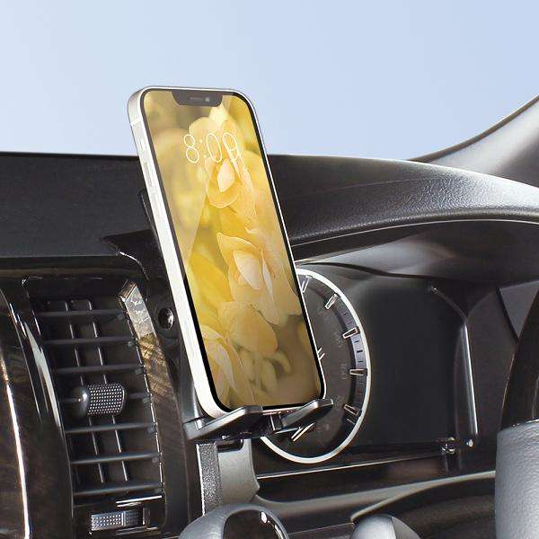 ●運転席側から見やすい位置にスマートフォンをホールド。