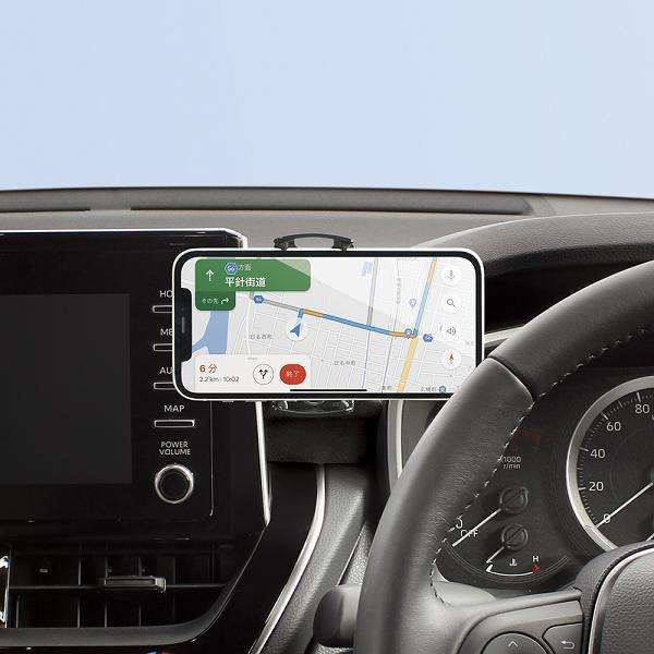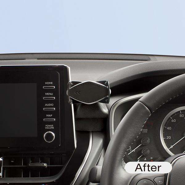 ●カローラクロス(ZSG1#/ZVG1#)の右ハンドル車のメーターフード左側に取り付けるスマートフォンホルダーです。