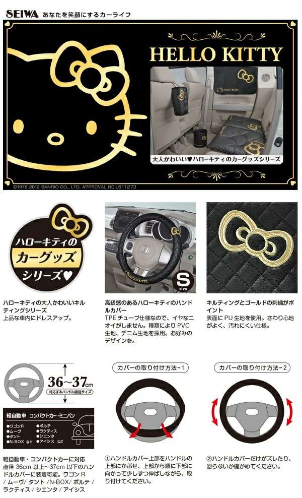 セイワ SEIWA KCMオンラインショップ カー用品 車用 カーアクセサリー カーインテリア 車内 車内アクセサリー 車内インテリア カー用 車内 車載 車載用 ハンドル ハンドルカバー ステアリング ステアリングカバー カバー ドレスアップ BK WH ブラック ホワイト ゴールド キティ キティー キティちゃん キティーちゃん ハローキティ ハローキティ KITTY kitty HELLOKITTY hellokitty 軽 軽自動車 トコンパクトカー