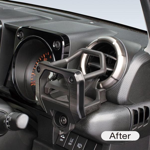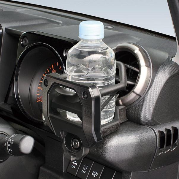 ●ジムニー・ジムニーシエラ(JB64/74)の右ハンドル車の運転席側サイド吹出し口下のパネルに取り付けできるドリンクホルダーです。