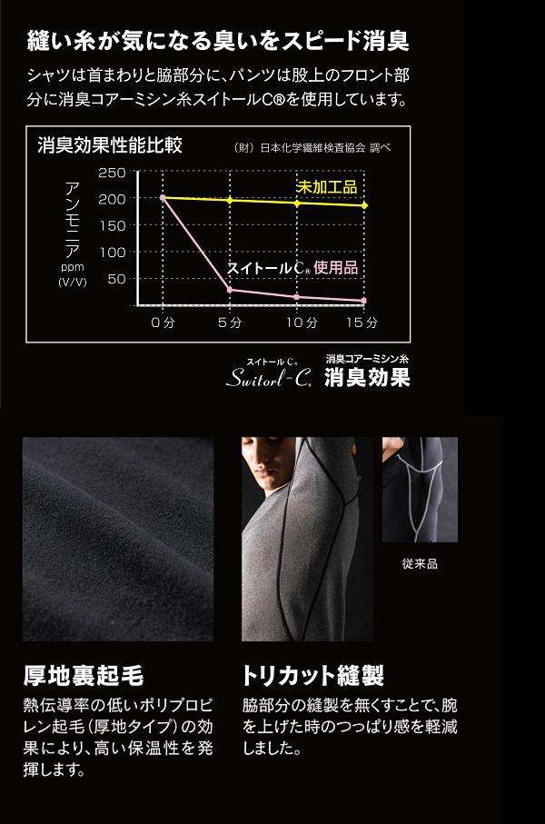 ◇従来の起毛タイプでは実現が難しかった吸汗速乾性能を併せ持つ、異素材2層構造が汗を瞬時に肌面から外側へ移動し、汗冷えをしにくく快適にしました。