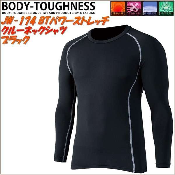 【ネコポス対応品1】OTAFUKU GLOVE JW-174 BTパワーストレッチ クルーネックシャツ メンズ ブラック【お取り寄せ商品】【おたふく手袋 スポーツウェア コンプレッション 作業衣料 防寒ウエア】