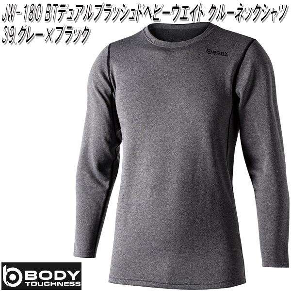 JW-180 BT デュアルブラッシュド ヘビーウェイト ロングスリーブ クルーネックシャツ グレー×ブラック【お取り寄せ】【ボディータフネス コンプレッション】
