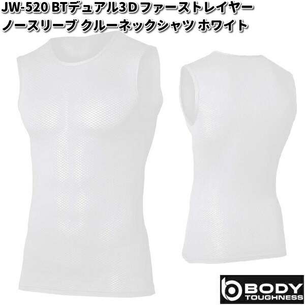 JW-520 BTデュアル3Dファーストレイヤー ノースリーブクルーネックシャツ ホワイト SS〜3L OTAFUKU GLOVE【ネコポス対応品2】【お取り寄せ】【ボディータフネス コンプレッションウェア】