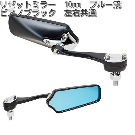 AMS-104-10 リゼット ミラー 10mm ブルー鏡 ブラック 左右共通