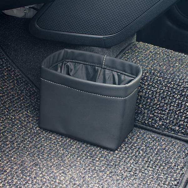 小物入れとしても使えるソフトなレザー調&グレーステッチのゴミ箱