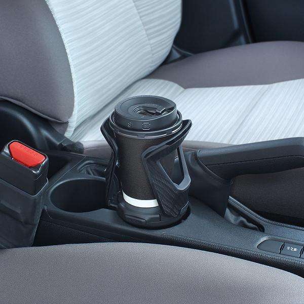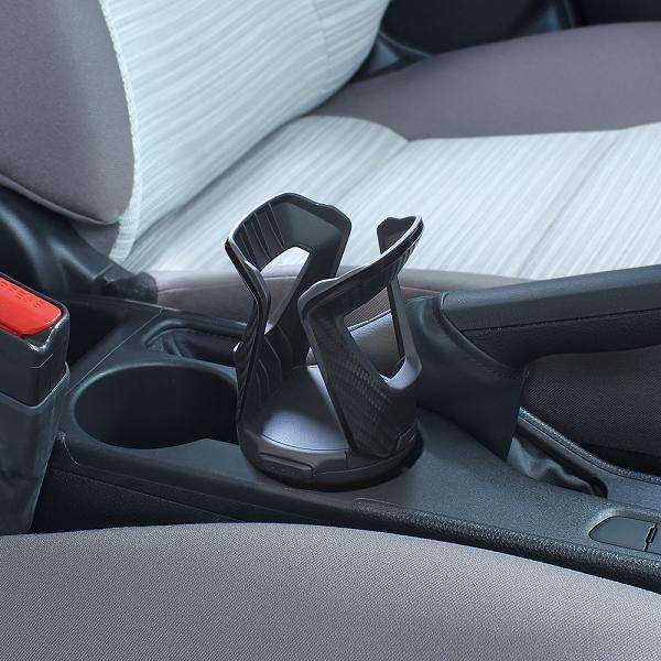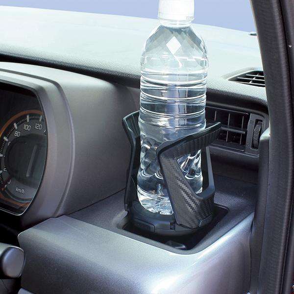 ◇ホールドアームが可動することで、純正カップホルダーに置くことができないペットボトルホルダーやマイボトル等を置くことができるドリンクホルダー。