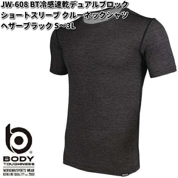 ■JW-608 BT冷感速乾デュアルブロック ショートスリーブ クルーネックシャツ ヘザーブラック