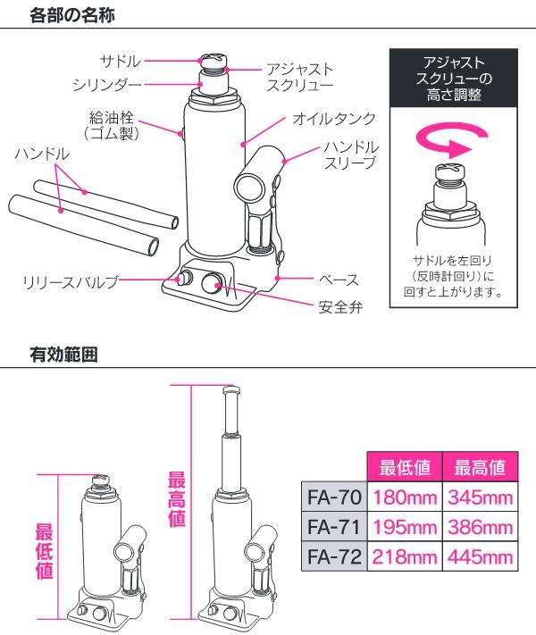 大自工業 FA-71 4t 油圧 ボトルジャッキ ヘビー FA71【お取り寄せ商品】保安用品 タイヤ交換 ジャッキ