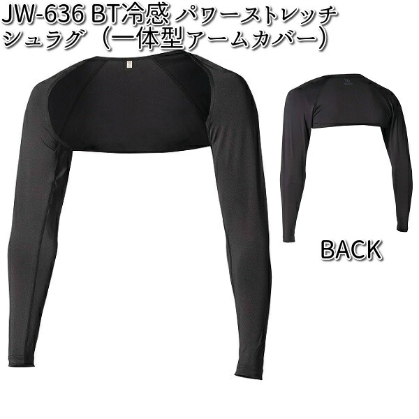 JW-636 冷感 パワーストレッチ シュラグ 一体型アームカバー ブラック