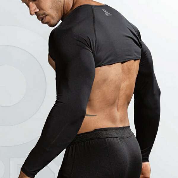 激しい動きの際にズレやすいアームカバーを一体型にしズレなくなりました。