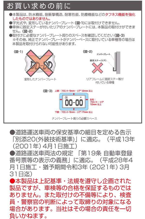 ●ナンバーフレームの基準・法規定に適合した製品です。