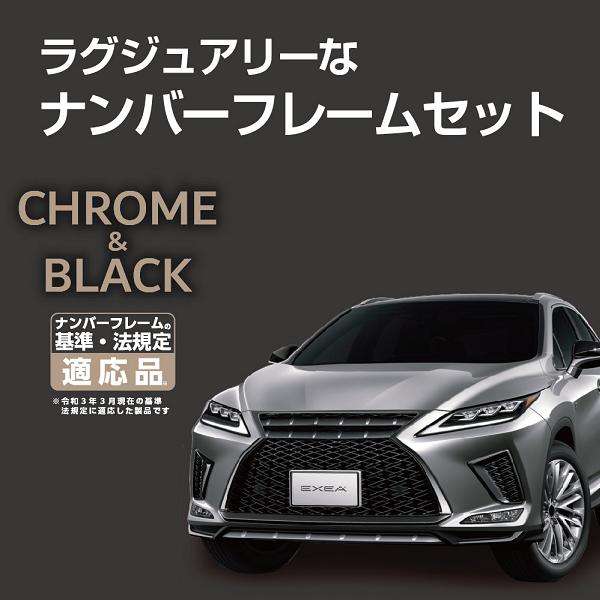 ●クロームメッキにブラックパネルを組合わせた、ラグジュアリーなナンバーフレームの前後セットです。