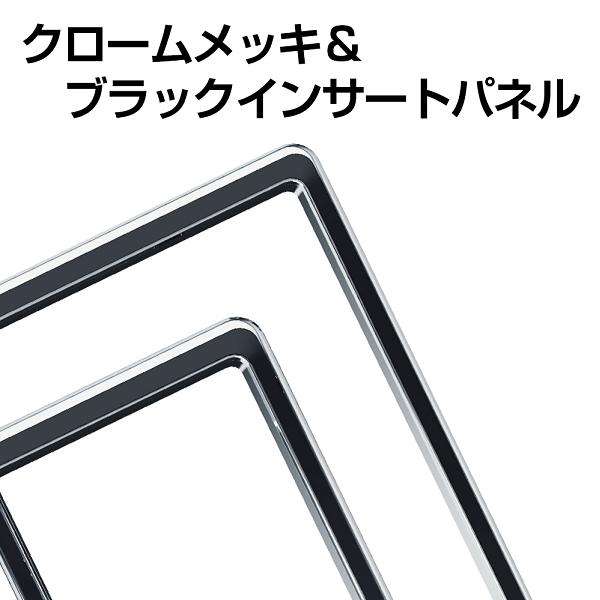 クロームメッキにブラックパネルを組合わせたナンバーフレーム