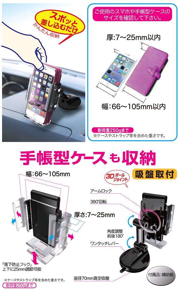 ●大きな手帳型ケースからスリムケースまで収納できるホルダー