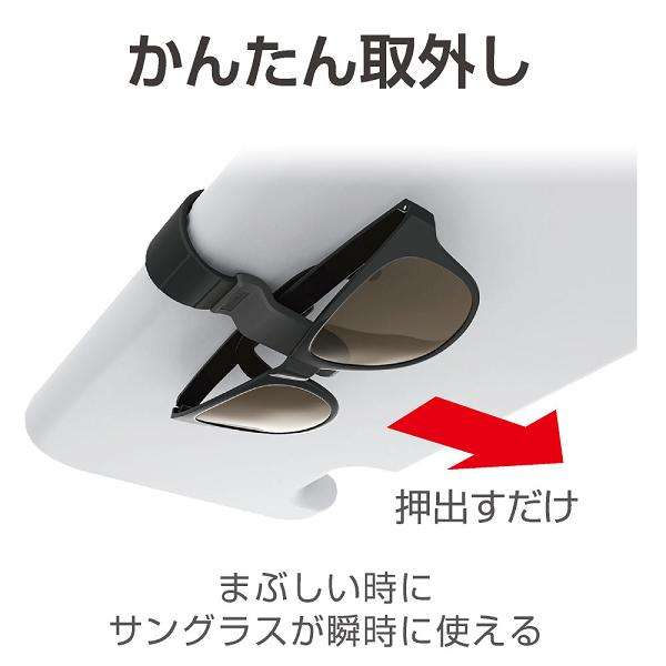 サングラスを押出すだけで、片手で簡単に取外せるホルダー