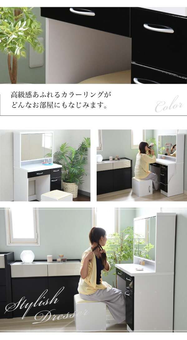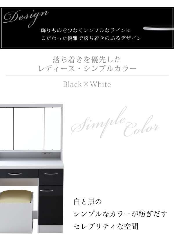 ジェイケイプラン fr-028-bkwh スタイリッシュシリーズ ドレッサー&スツール ホワイト/ブラック【組立式】【メーカー直送】【同梱/代引不可】