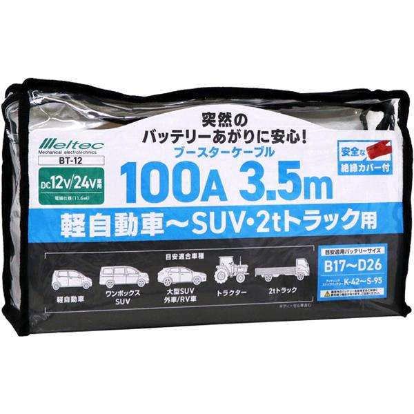 大自工業 MELTEC メルテック カー用 ブースター ケーブル クリップ バッテリー チャージャー 上がり 充電 DC12V DC24V トラック 普通 自動車 乗用車 ミニバン コンパクトカー 軽自動車 バン 緊急用品 保安 用品 緊急用品
