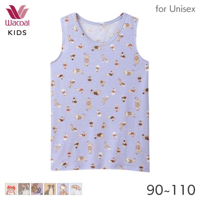 タンクトップ 袖なし トップス キッズインナー キッズ肌着 子ども肌着 男女兼用 ガールズインナー ボーイズインナー GIRLS BOYS 女の子 男の子 女児 男児 園児 小学生 アニマル柄 動物柄 犬柄 猫柄 うさぎ柄 ワニナル Waninal 親子ペアルック おそろいコーデ CAX180 CPS580 環境配慮 WACOAL ワコール