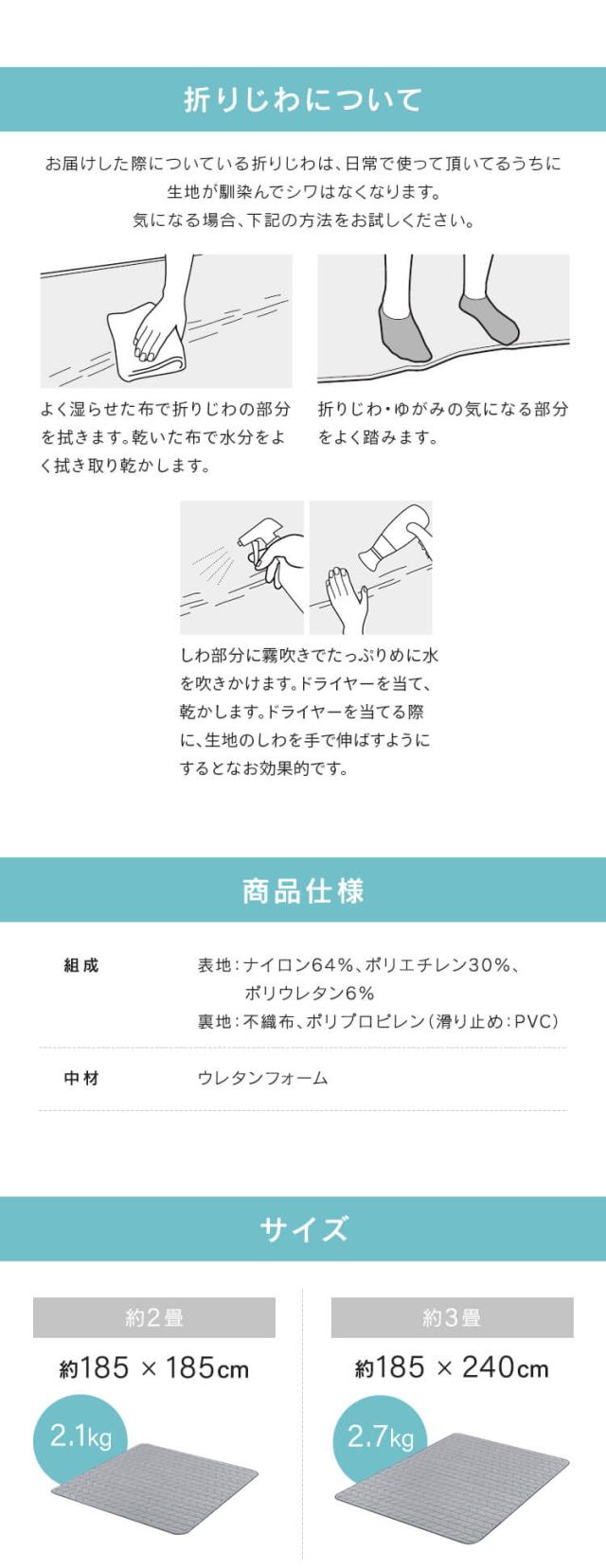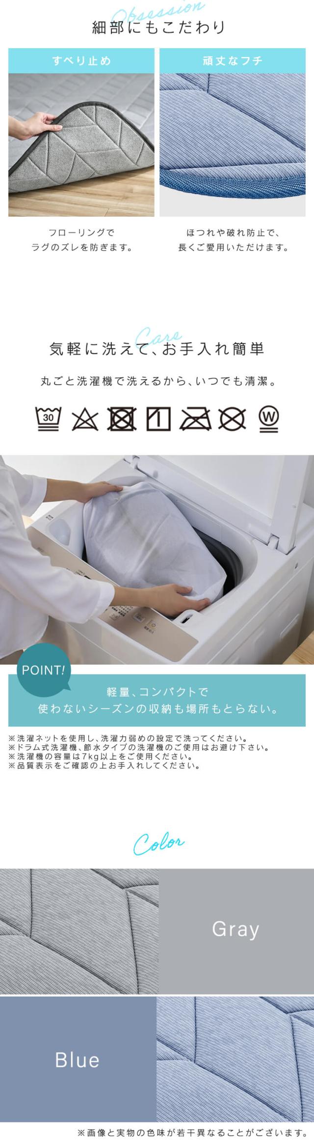 キルティング加工でふんわり柔らかな踏み心地、さらさらの肌触りが気持ちいい。