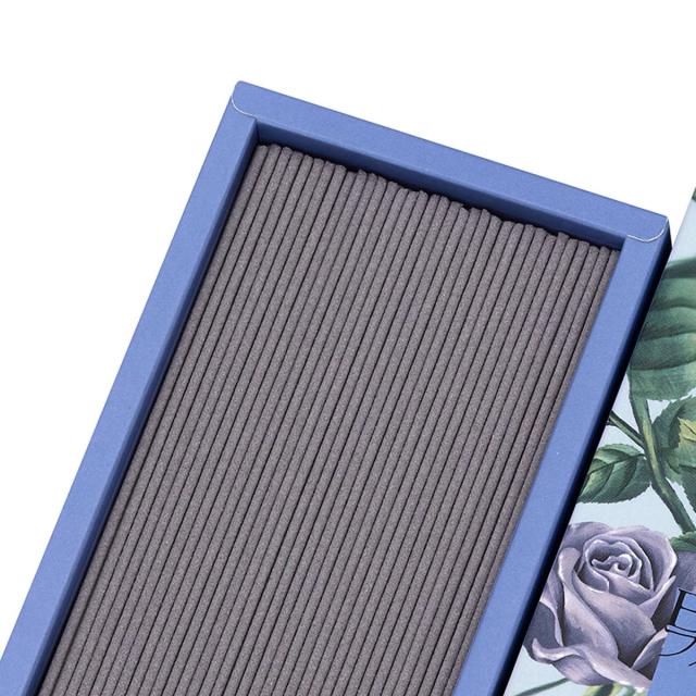 かなり少ないけむりで繊細な香りのお線香です。ブルーローズの香りをテーマとしており、生花の香りそのものが活かされています。フレッシュフローラル調のさわやかさが特徴の麗しく上品でさわやかな香りです。
