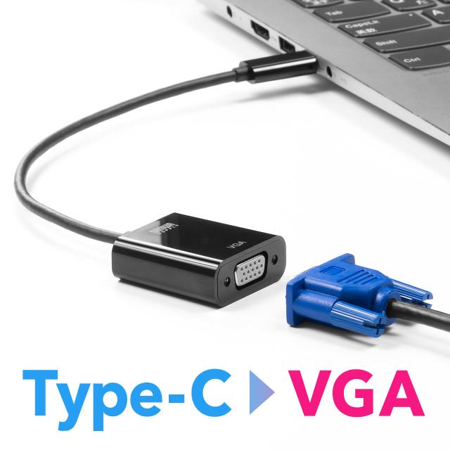 ⇒ご購入の前にご確認下さいiPad Proやノートパソコン、スマートフォン等の映像出力可能なType-CからVGA出力が可能になる変換アダプタ。USB Type-CオスをミニD-sub(HD)15pinオスに変換。ケーブル長は約20cm。ブラック。【WEB限定商品】
