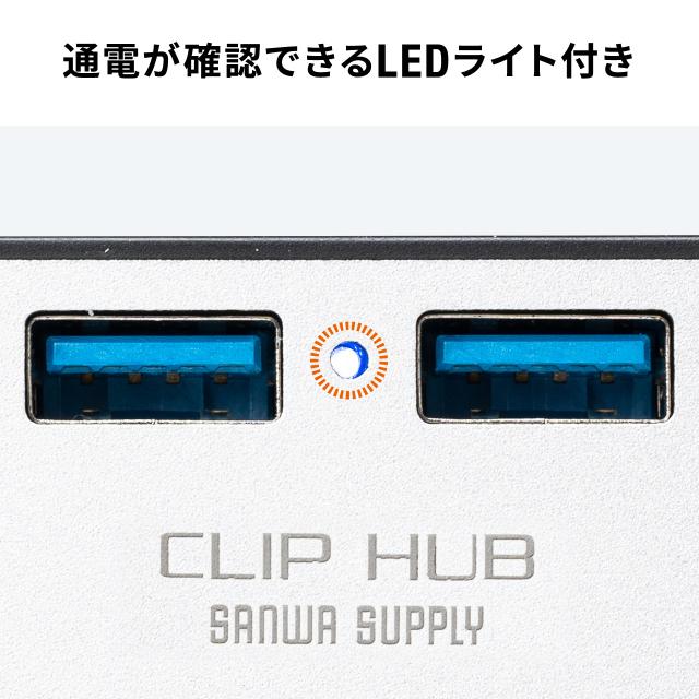 ●クリップで机やモニターに取り付けられるUSBハブです。●内部にバネを内蔵し、挟み込んで設置できます。