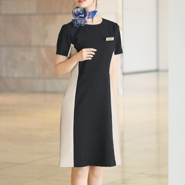 レディース ワンピース 膝丈 サロン エステ 美容 卒業式 入学式 卒業式 ママ服 ジョア 62055 オフィス 制服 通勤 事務服 入園式 きちんと 黒ワンピ