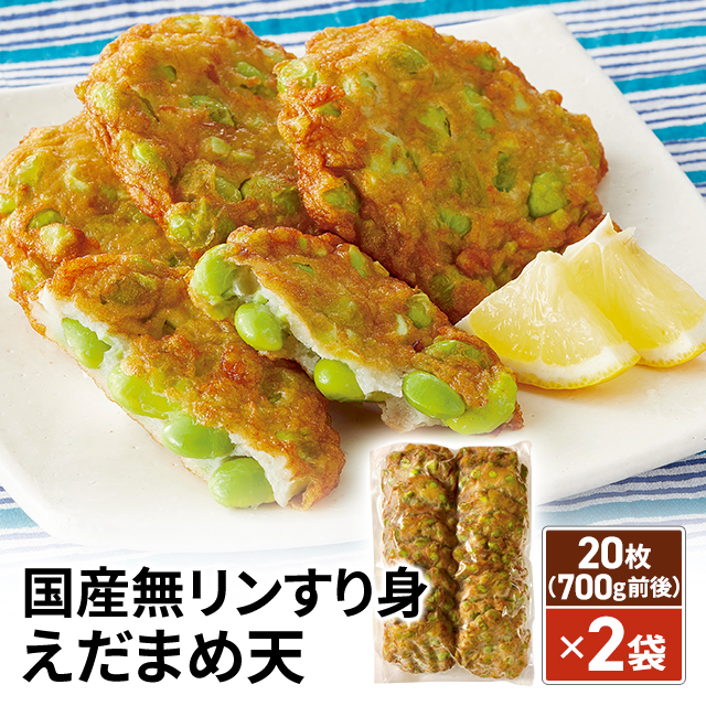 送料込み 国産無リンすり身 えだまめ天 20枚(700g前後)×2袋 惣菜 大容量 さつま揚げ 国産 枝豆天 お弁当 おかず まとめ買い