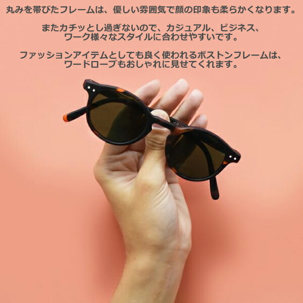 THE ICONIC【象徴的】 IZIPIZIで1番人気のクラシックタイプのボストンフレーム。 丸みを帯びたフレームは、優しい雰囲気で顔の印象も柔らかくなります。 またカチッとし過ぎないので、カジュアル、ビジネス、ワーク様々なスタイルに合わせやすいです。 ファッションアイテムとしても良く使われるボストンフレームは、ワードローブもおしゃれに見せてくれます。 | ||||||