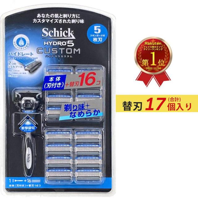 keyword:ひげそり 替刃 カミソリ メンズ 髭剃り schick(シック) Schick HYDRO5 CUSTOM シック ハイドロ5 カスタム 替刃 16個 17個 16枚 17枚 本体 ひげ剃り 替え刃 5枚刃 スキンガード 衝撃吸収テクノロジー ココナッツオイル 滑らか 剃刀 ひげ あご 鼻の下 もみあげ 男性 schick ハイドロ 替刃 ひげそり 替刃 しっくはいどろ5 替刃 shick hydro5 替刃 プレミアム 極 シック ハイドロ shick schick ハイドロ 替刃
