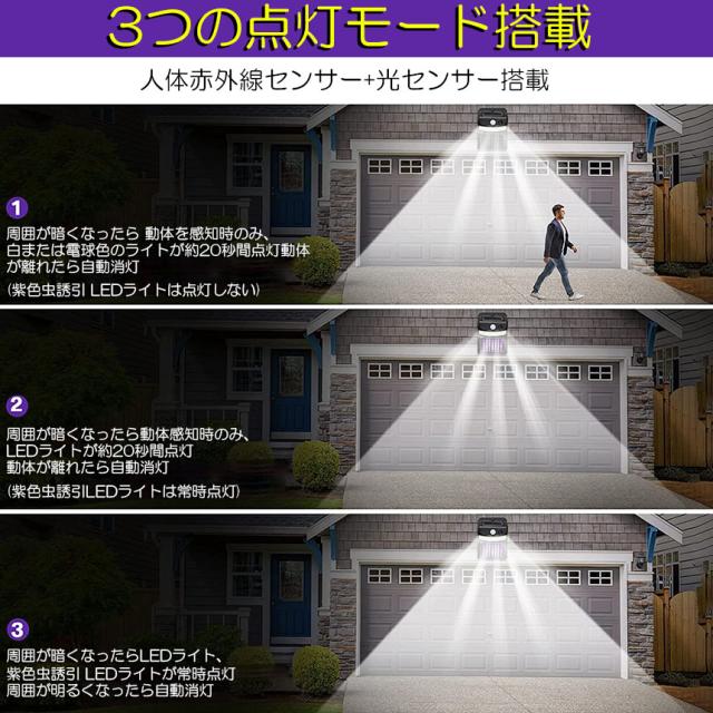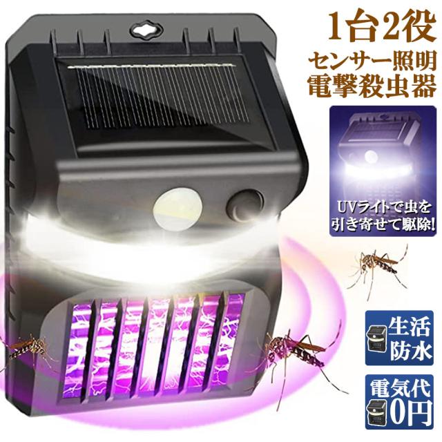 電撃殺虫器 殺虫灯 ソーラーライト led センサーライト 16LED 蚊よけ 照明 蚊取り 両方 自動点灯 人感センサー 虫除け コバエ取り ガーデンライト キャンプ ライト ledライト 人感ライト 玄関ライト おしゃれ 虫取り機 蚊取り器 捕虫器