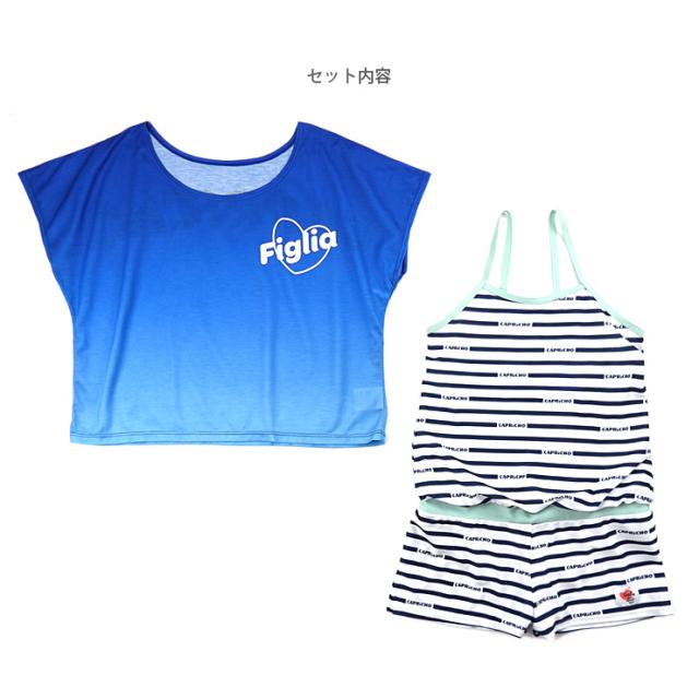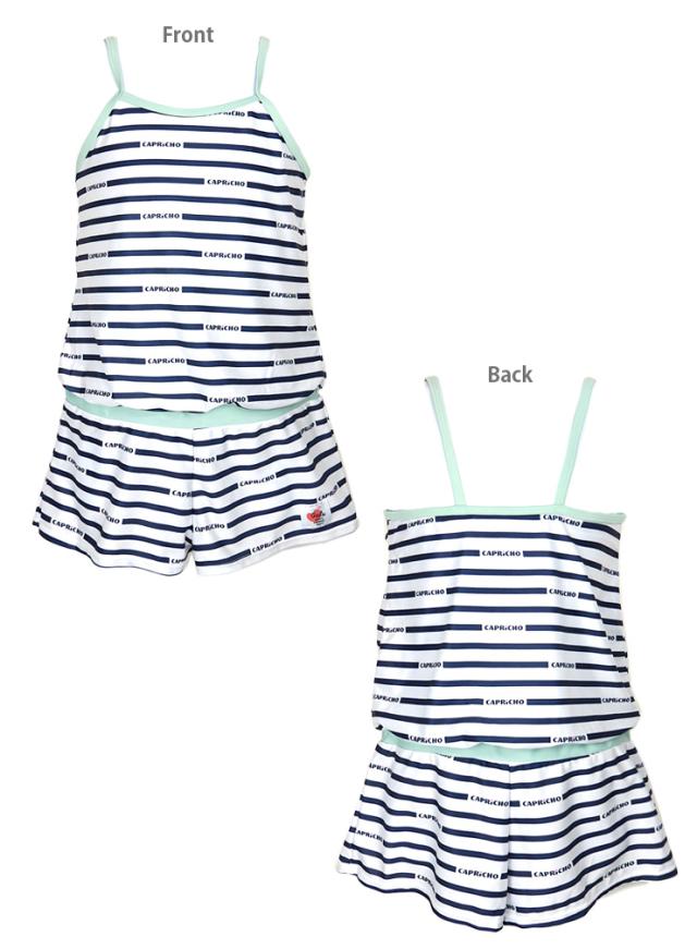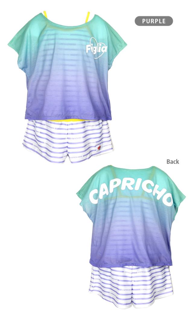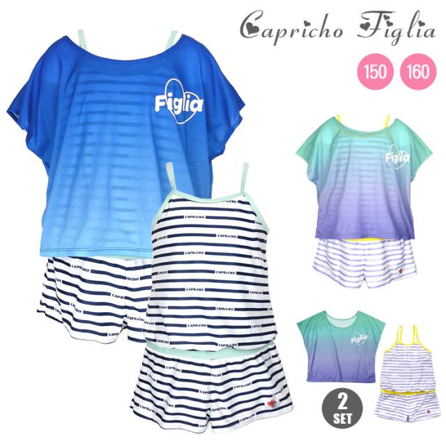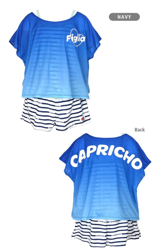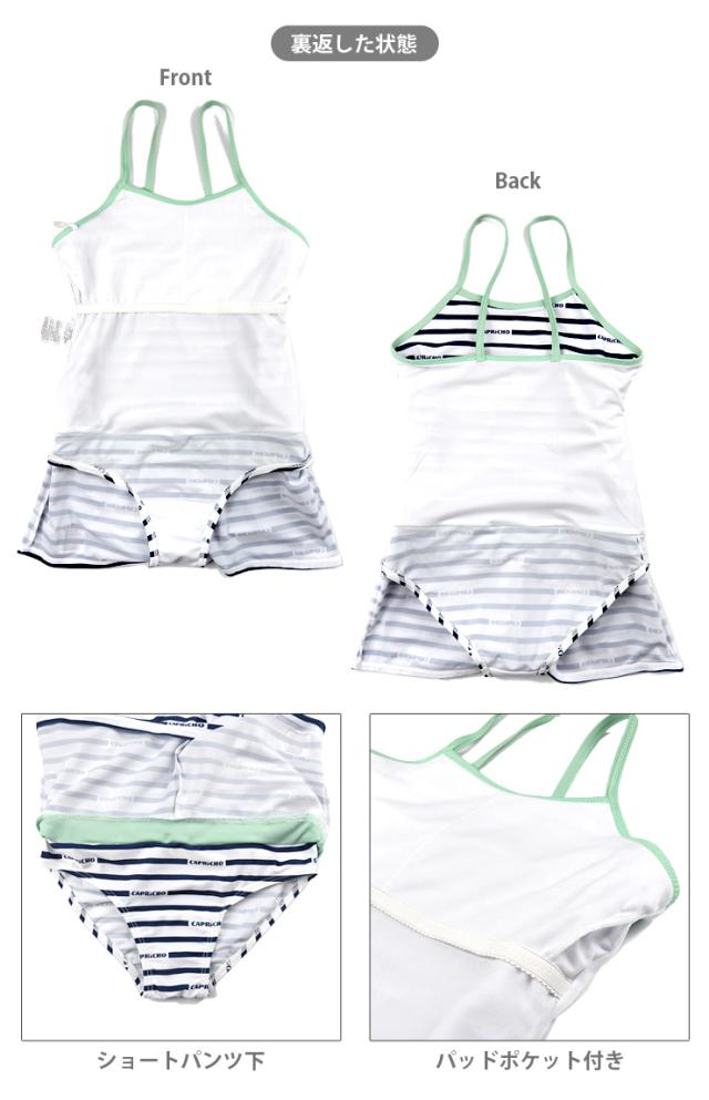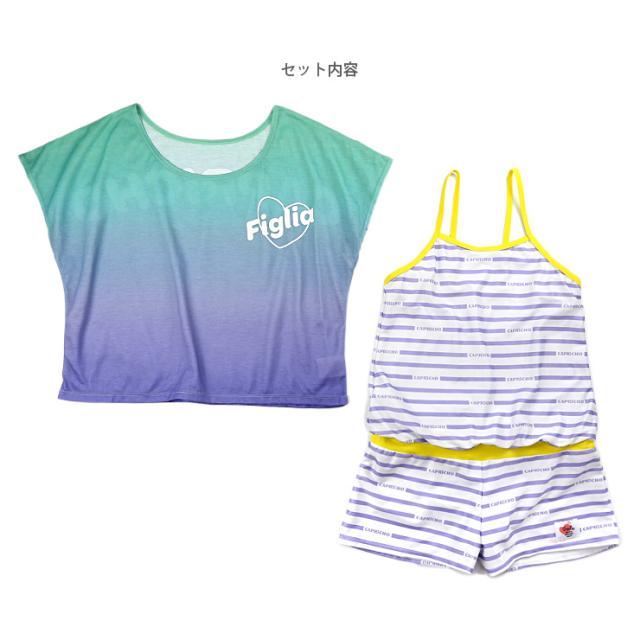 ジュニア女の子用トップス付きワンピース水着2点セット 150 160 カプリチョフィリア オールインワン Tシャツ ショートパンツ No.sw3311