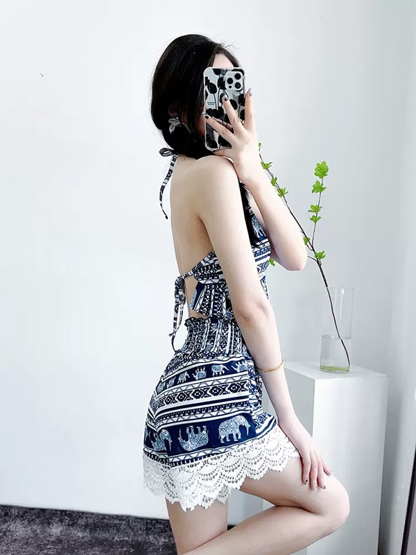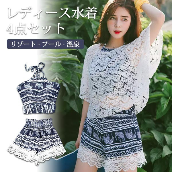 タンキニ 水着 キャミソール 五分袖 ラッシュガード クロシェ編み フリンジ水着 レースアップ 三角ビキニ ホルターネック ボーイレッグ ワイヤーあり パッド付 レディース 体型カバー 海 プール リゾート かわいい 温泉 大人 女性用 ジュニア 学生 女の子df141m4m4zr