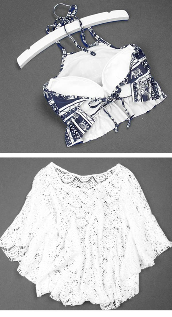 【送料無料】タンキニ 水着 キャミソール 五分袖 ラッシュガード クロシェ編み フリンジ水着 レースアップ 三角ビキニ ホルターネック ボーイレッグ ワイヤーあり パッド付 レディース 体型カバー 海 プール リゾート かわいい 温泉 大人 女性用
