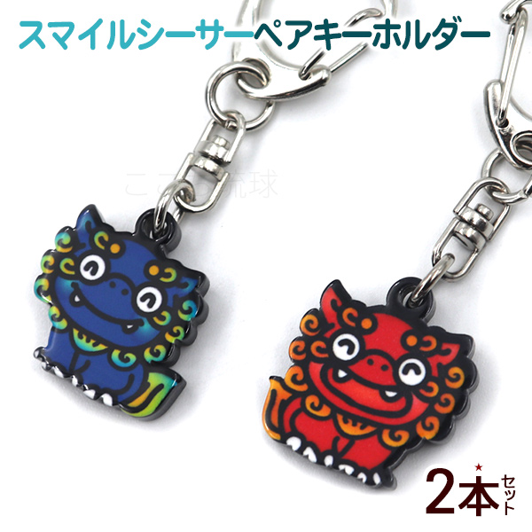 スマイルシーサー ペアキーホルダー /沖縄お土産 雑貨 【M便】