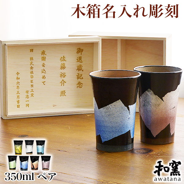 「送料無料」 九谷焼 ビアカップ awatana 銀彩 専用木箱付き 350ml ペア 蓋裏レーザー名入れ彫刻料込み ( 和窯 awatana 木箱名入れ有料 )