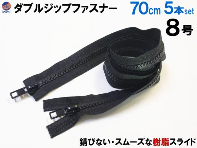 ダブルジップファスナー (70cm 5本)【商品一覧】 #8 ダブルジッパー 樹脂製 ダウンジャケット 修理