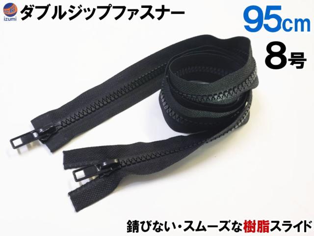 ダブルジップファスナー (95cm 1本)【メール便 送料無料】 #8 ダブルジッパー 樹脂製 ダウンジャケット 修理