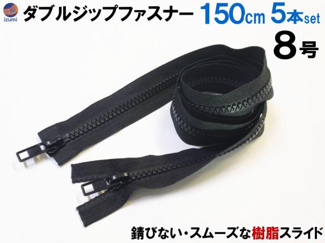 ダブルジップファスナー (150cm 5本)【商品一覧】 #8 ダブルジッパー 樹脂製 ダウンジャケット 修理
